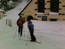 kaufen eine Coca Cola! Danach geht es mit den Skiern an den Füßen wieder den