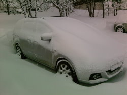 Schneeschiebern zum Parkplatz und schaufeln eine halbe Stunde unser Auto